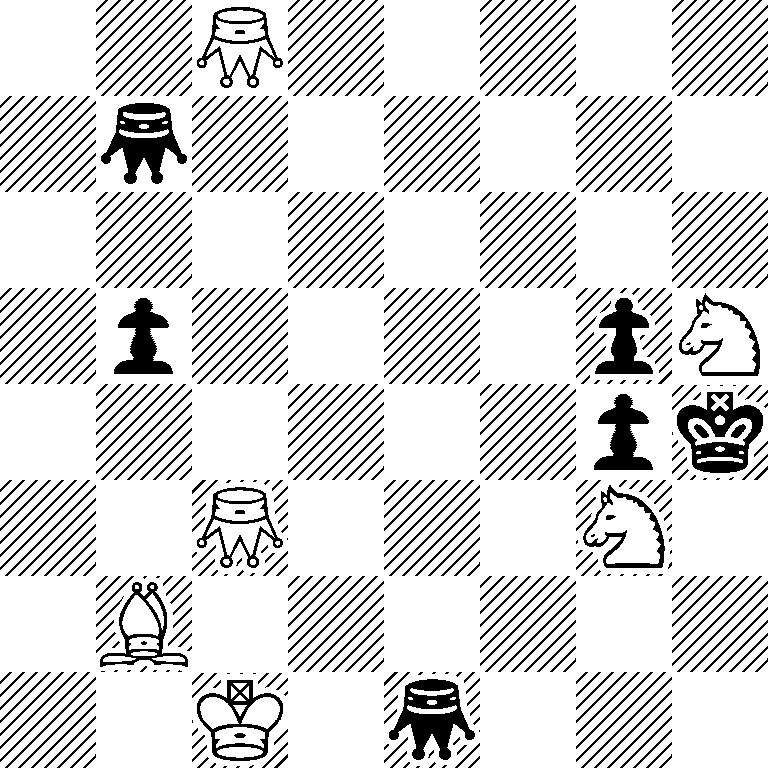 White plays to three different squares on the a1-h8 diagonal, threatening mate by the wGa1 moving to a square just past the bishop. The black move one defences remove potential defences which White can take advantage of. After 1...Gb1, 2...Ge6! is no longer possible. After 1...b4, 2...Gb4! is not a move and 1...Gb4 stops 2...Gh7!