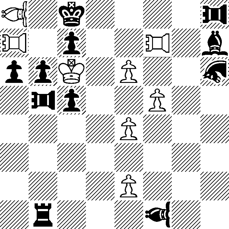 1.e5! (2.e4 VAg2#) 1...MAxf5 2.VAb7 MAe7# 1...Bxf5 2.PAb7 Be4# 1...Kb8 2.PAd7 PAc8# 1...VAg2 2.f6 Be4#